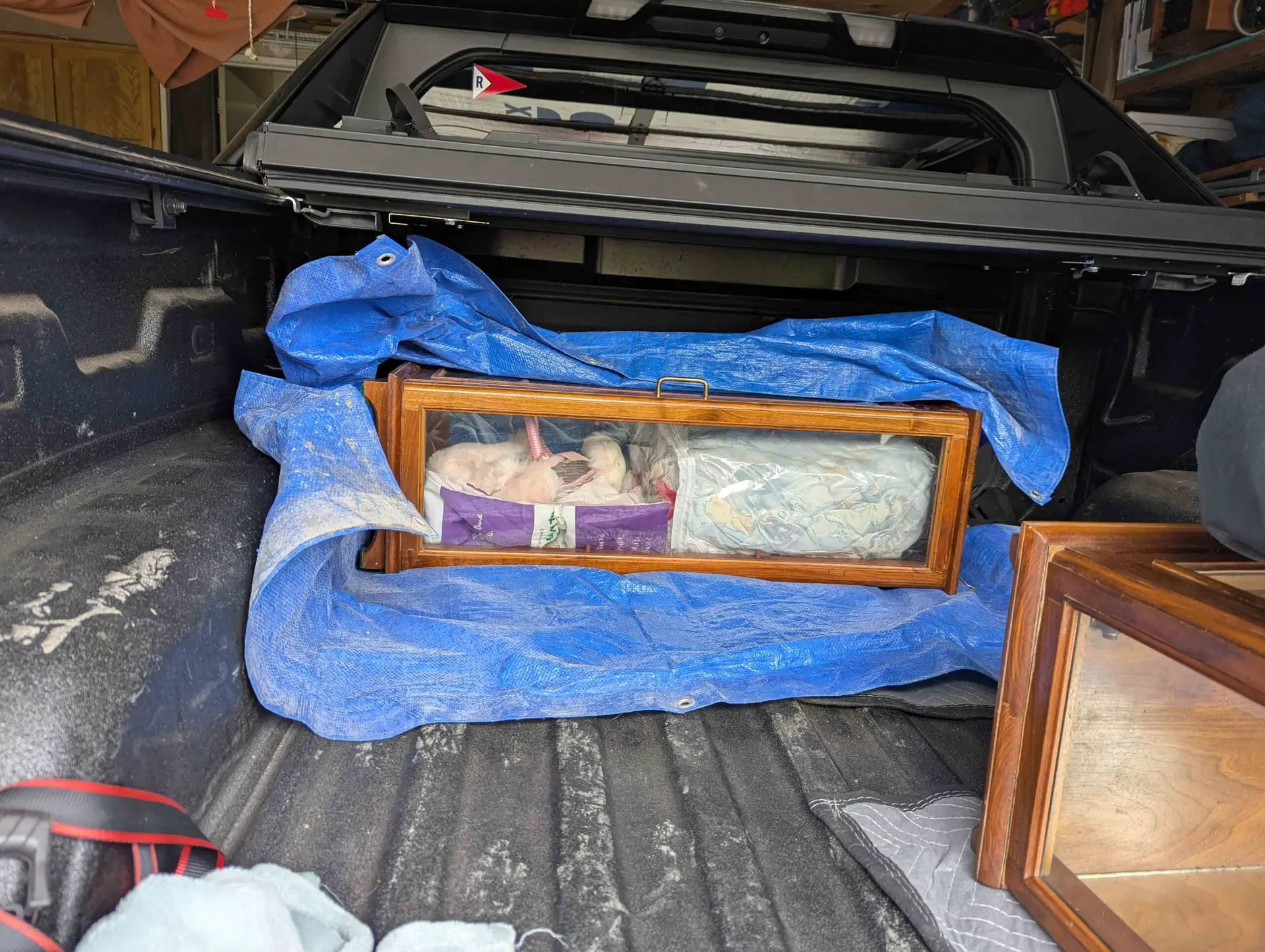 Epic, Electric Road Trip Adventure #1 – The Count Down Grandma-EV, April 26, 2025April 29, 2025 Saturday, 4-26-2025 Grandpa-EV and I are planning an epic road trip adventure. We will be driving our Silverado EV from our home in Northern California to our daughter’s house in Ottawa, Canada. Neither of us has ever driven farther than about halfway across the US. We will be staying with our daughter and her family for about 6 weeks. Today we packed the bed of truck completely full, under the hard tonneau cover. My daughter moved to Canada a few years back. We are taking her some boxes of her childhood toys and other mementos. Her grandparents also left her several things, China, and twin curio cabinets made by her grandpa. It seemed like just a few things when we were planning this journey, but it has grown to fill the available space. Handmade cabinet. 1 of 2 The bed fully packed. The hard tonneau will keep everything fairly dry. We only packed things back there that would not be affected by water, or they got wrapped in tarps or packed in plastic bins. It also allows us to securely lock the items in the bed. More plastic bins are going in the back seat. We folded the seats up, but left the backs in place. This gave us the most room to pack in the back seat. Grandpa-EV was worried that the metal rails, on the floor, under the seats, would wear and puncture the bottoms of plastic bins. So he came up with this solution… Custom cut plywood, to make a flat stable area for packing in more boxes. I’ll post another picture when we get all the boxes packed. We still have all our personal luggage to shoe horn in. Our Itinerary: Day 1, Tue.: Leave after work, drive out of California and halfway across Nevada, about 6 hours. Day 2, Wed.: Drive all day to Wyoming Day 3, Thur.: Drive all day to Iowa Day 4, Fri.: Drive all day to the upper part of lower Michigan. Day 5, Sat.: Buy sailboat and get it road-worthy, drive the last 9 hours to daughter’s house, towing the boat. Day 6, Sun.: Arrive in the wee hours. Share this: Click to share on Facebook (Opens in new window) Facebook Click to share on X (Opens in new window) X Discover more from Grandma-EV Subscribe to get the latest posts sent to your email. Type your email… Subscribe Roadtrips Uncategorized